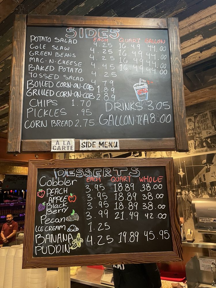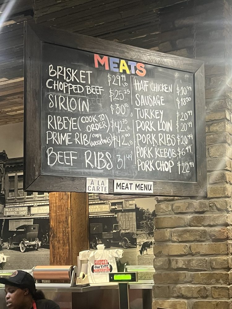 Introducing the menu at Cooper's Old Time Pit Bar-B-Que, located in Austin, TX, you can expect delicious barbeque options like Beef Ribs, Brisket, Chopped Beef, Chopped Beef Sandwich, Goat/Cabbrito, Half Chicken, Jerky, Pork Chops, Pork Loin, Pork Ribs, Prime Rib, Ribeye, Sausage, Sirloin, Turkey, and Whole Chicken. The sides include Baked Potato, Chips, Coleslaw, Corn on Cobb, Drinks, Grilled Corn, MacNCheese, Pickles, Pinto Beans, Potato Salad, Tea Gallon, and Tossed Salad. Don't forget to save room for dessert with options like Apple Cobbler, BlackBerry Cobbler, Ice Cream, Peach Cobbler, and Pecan Cobbler. Cooper's also offers catering services, outdoor seating, full bar, and happy hour specials. This casual spot with free Wi-Fi and friendly staff is perfect for lunch or dinner, with options for everyone including vegetarians. A must-try for BBQ lovers!